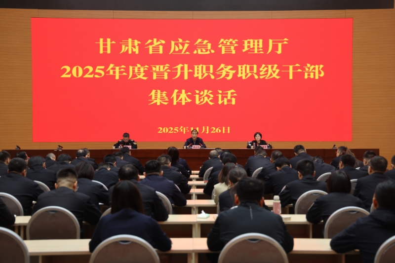 11月26日上午,省应急管理厅召开2025年度晋升职务职级干部集体谈话会议,2025年度全体新晋升职务职级干部参加会议。